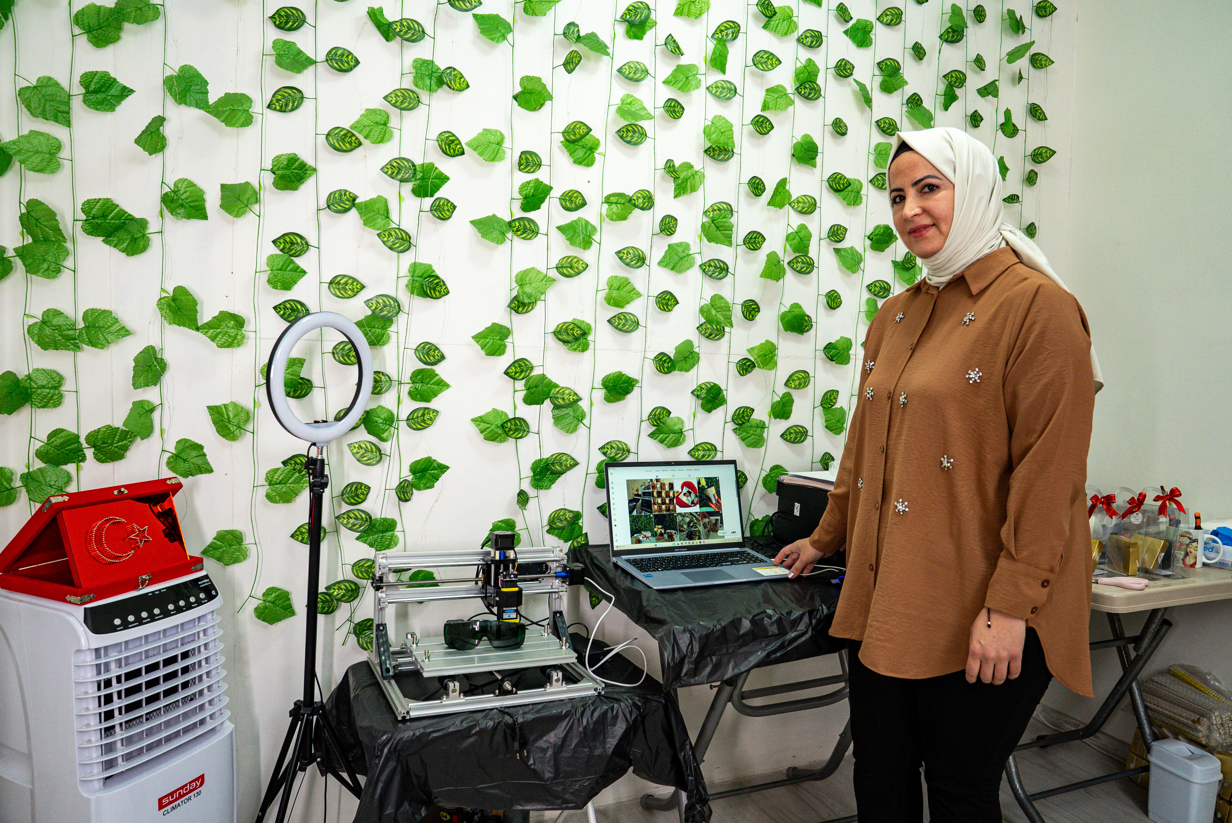 Just as she reached the limits of what felt like "financial impossibility," Aslı’s path crossed with the Danish Refugee Council (DRC). Through grant support, she received a printing machine and epoxy materials, transforming not only her production process but the entire rhythm of her life.