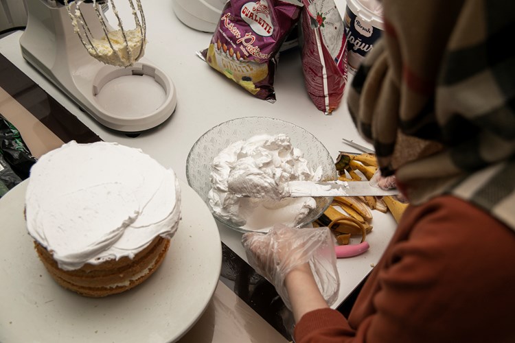 A small house in the suburbs of Antakya, a city near the Turkish Syrian borders, smells of freshly made desserts. The closer you get, the more you crave to have a bite of them. You enter the house and find a simple home kitchen with a couple of cakes and some sweets ready to be boxed and sent to the clients.