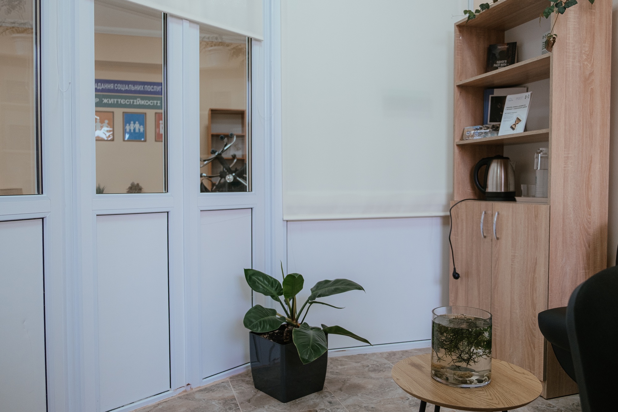 “We’re thinking of putting an additional cabinet or wall shelf for a kettle and cups, so it’s possible to create a welcoming atmosphere over a cup of tea,” says Nataliia. Plans are also underway for a small cloakroom where visitors can leave their personal belongings.