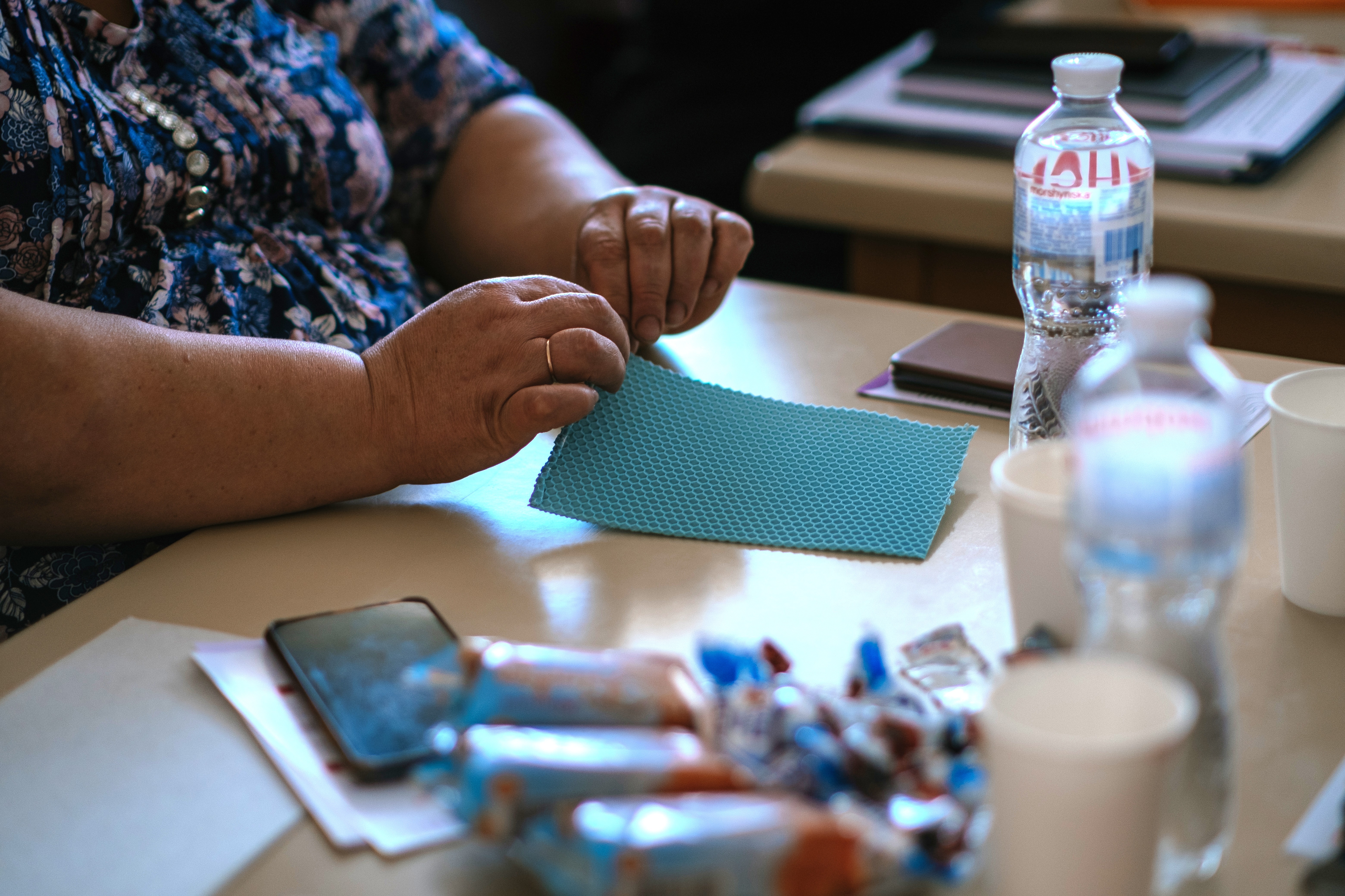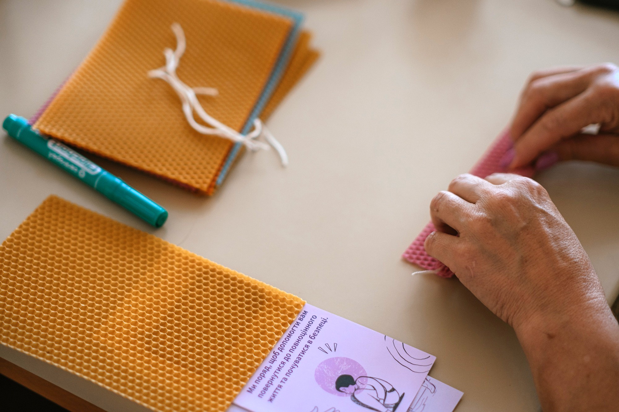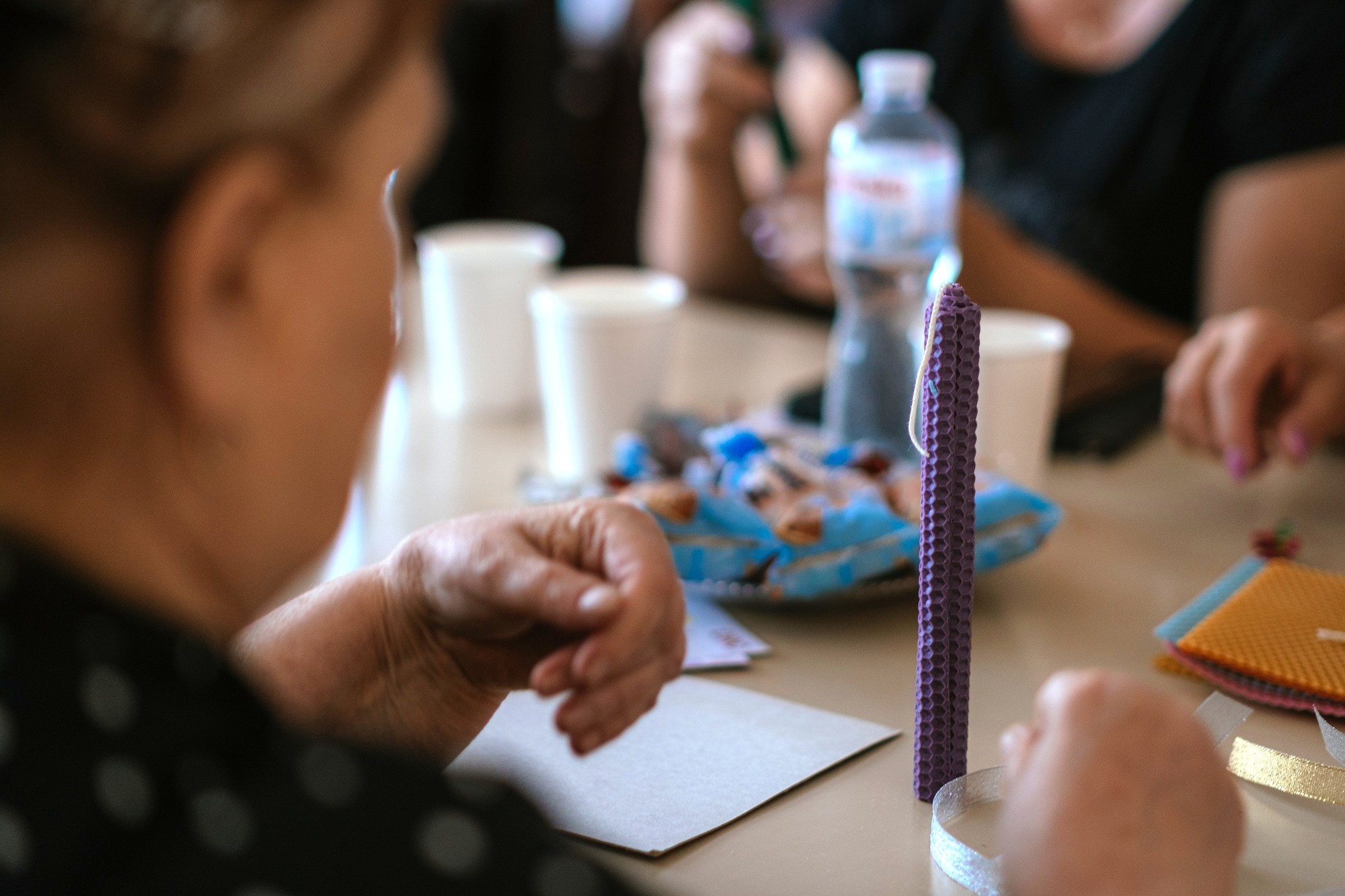 Creating wax candles during sessions offers a calming, therapeutic activity that helps women gently open up while discussing sensitive topics. This approach fosters a supportive environment, easing conversations about challenges and perceptions. ©DRC Ukraine, Koriukivka, Chernihiv Oblast, September 2024, Krystyna Pashkina
