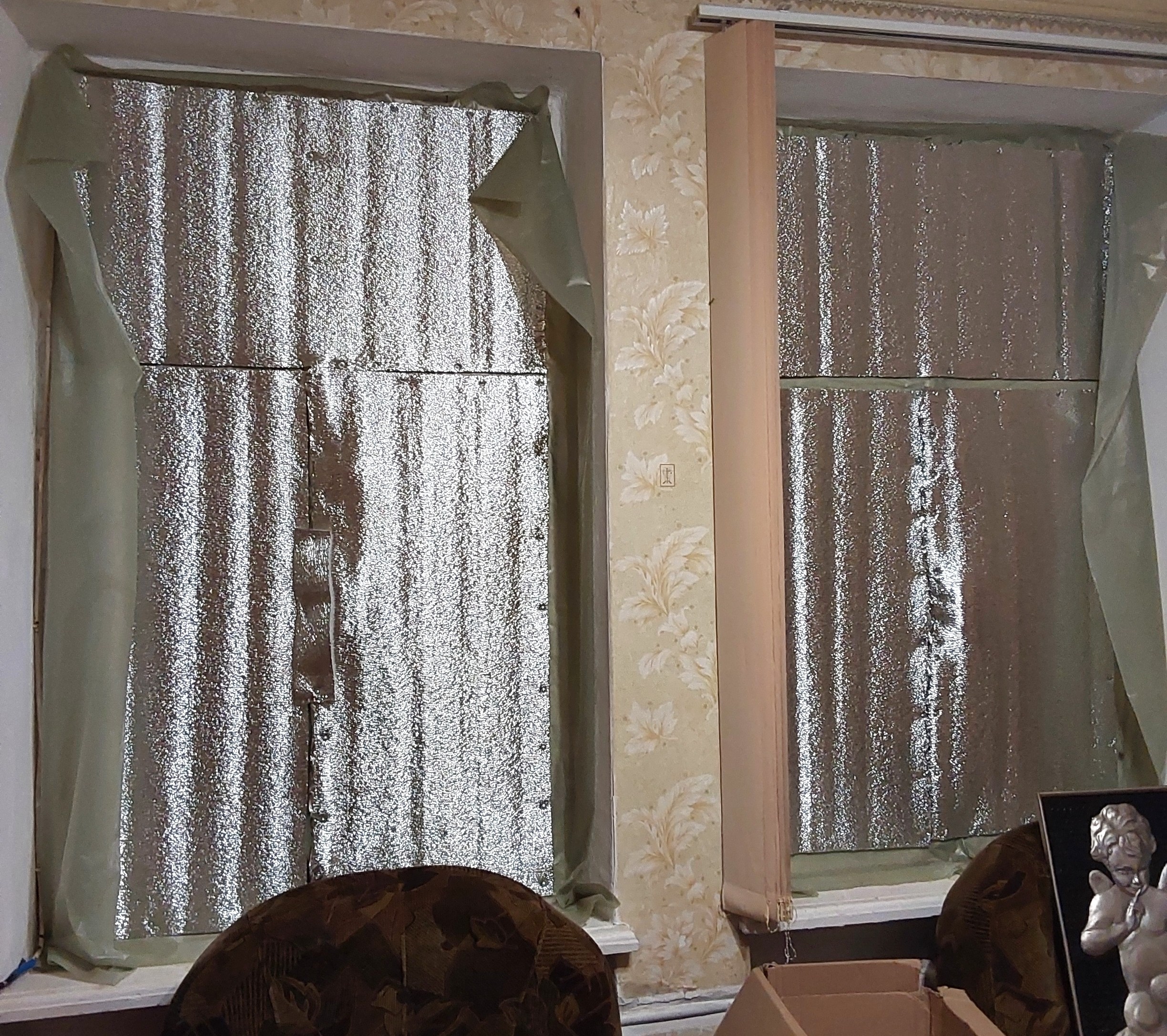 Windows in Oksana's apartment before and after the replacement. ©DRC Ukraine, Sloviansk, Donetska Oblast, March 2025, Krystyna Pashkina