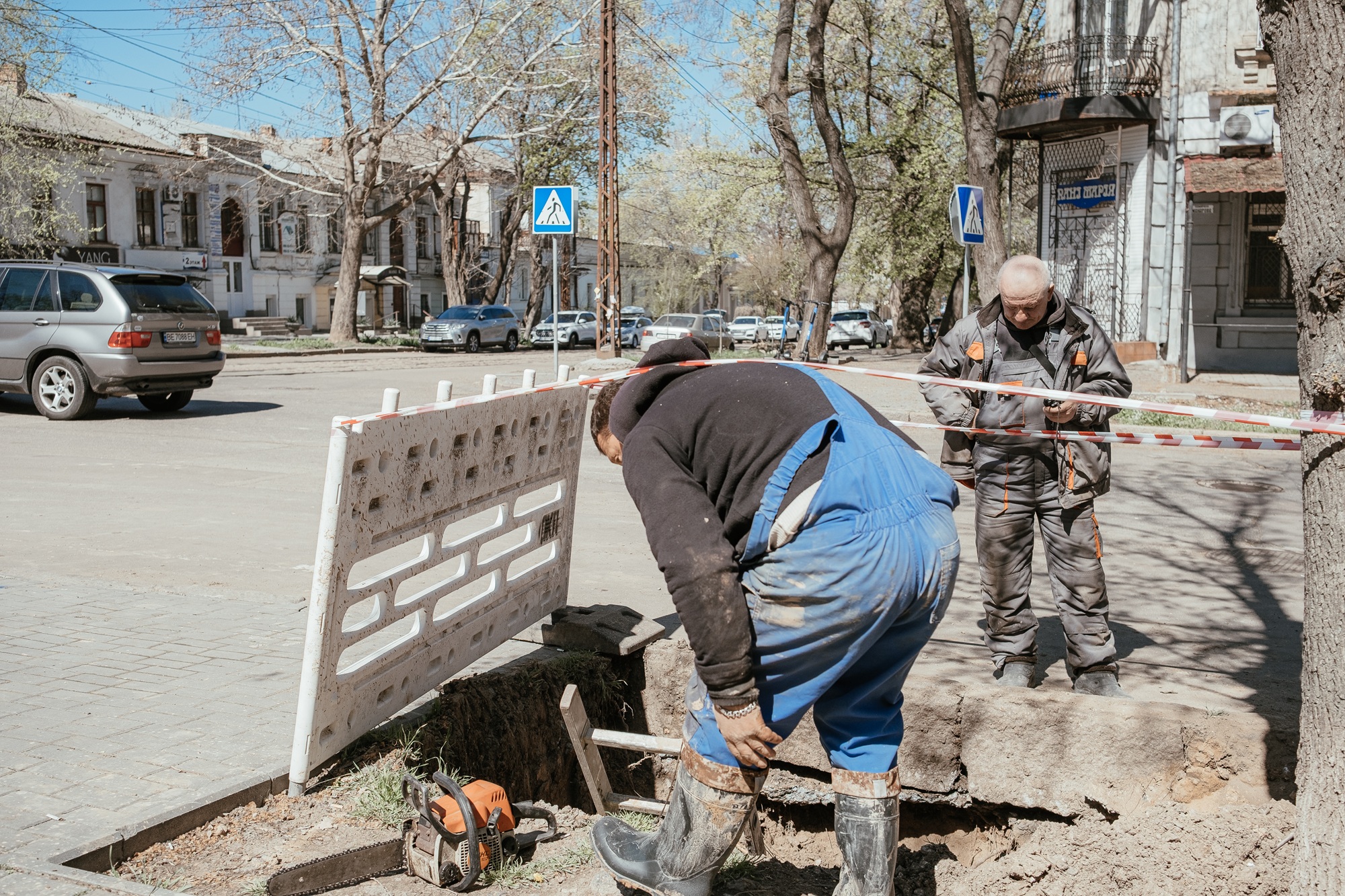 Replacement of 909 metres of the pipeline on Admiral Makarov Street in central Mykolaiv. ©DRC Ukraine, Mykolaiv, April 2025, Krystyna Pashkina